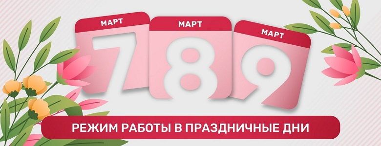 • Выходные дни: 7, 8 и 9 марта.