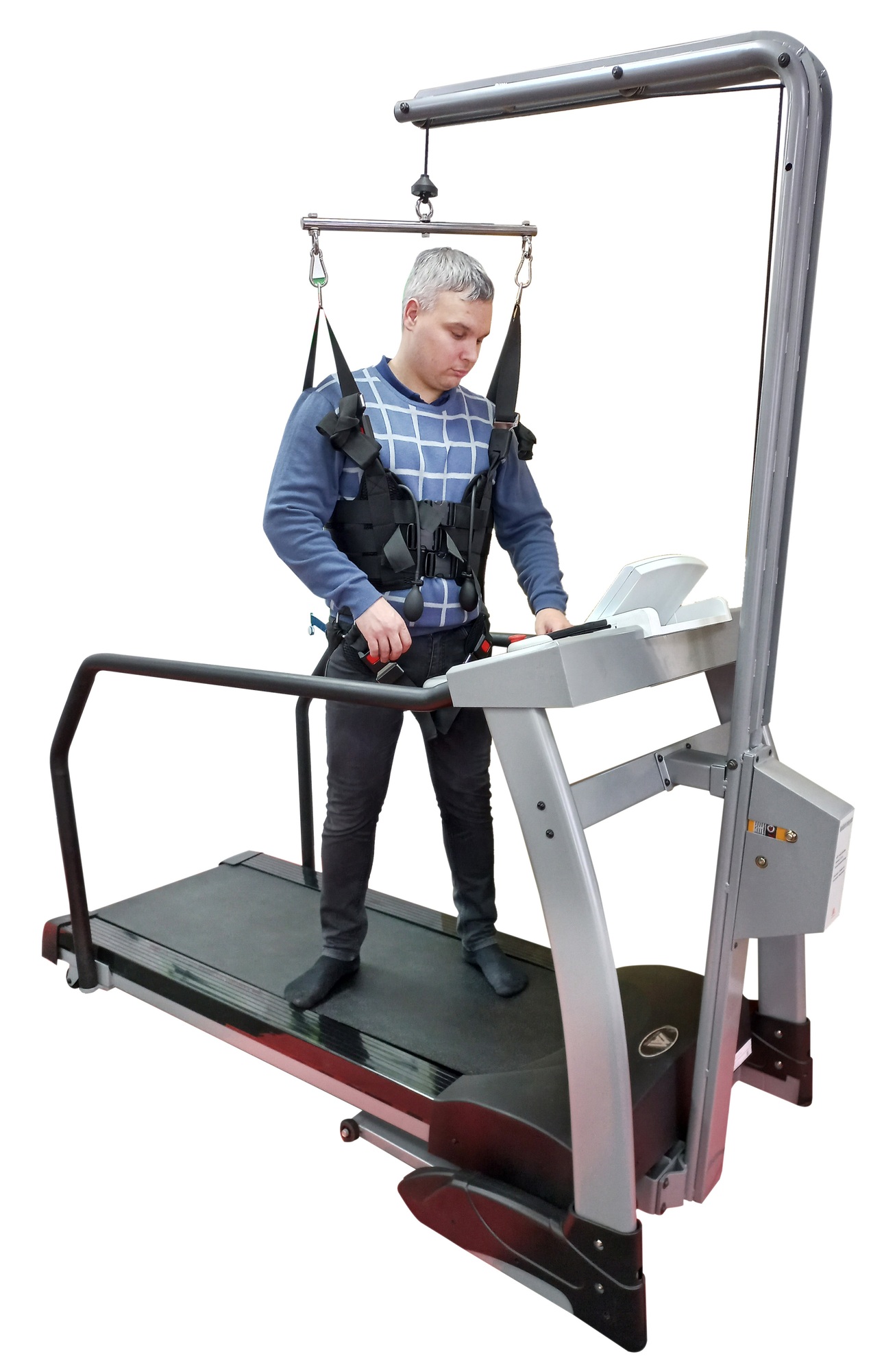 Тренировки на беговой дорожке без использования системы подвеса возможны для пользователей до 140 кг весом, благодаря установленному мощному мотору постоянного тока в 2.5 л.с.!