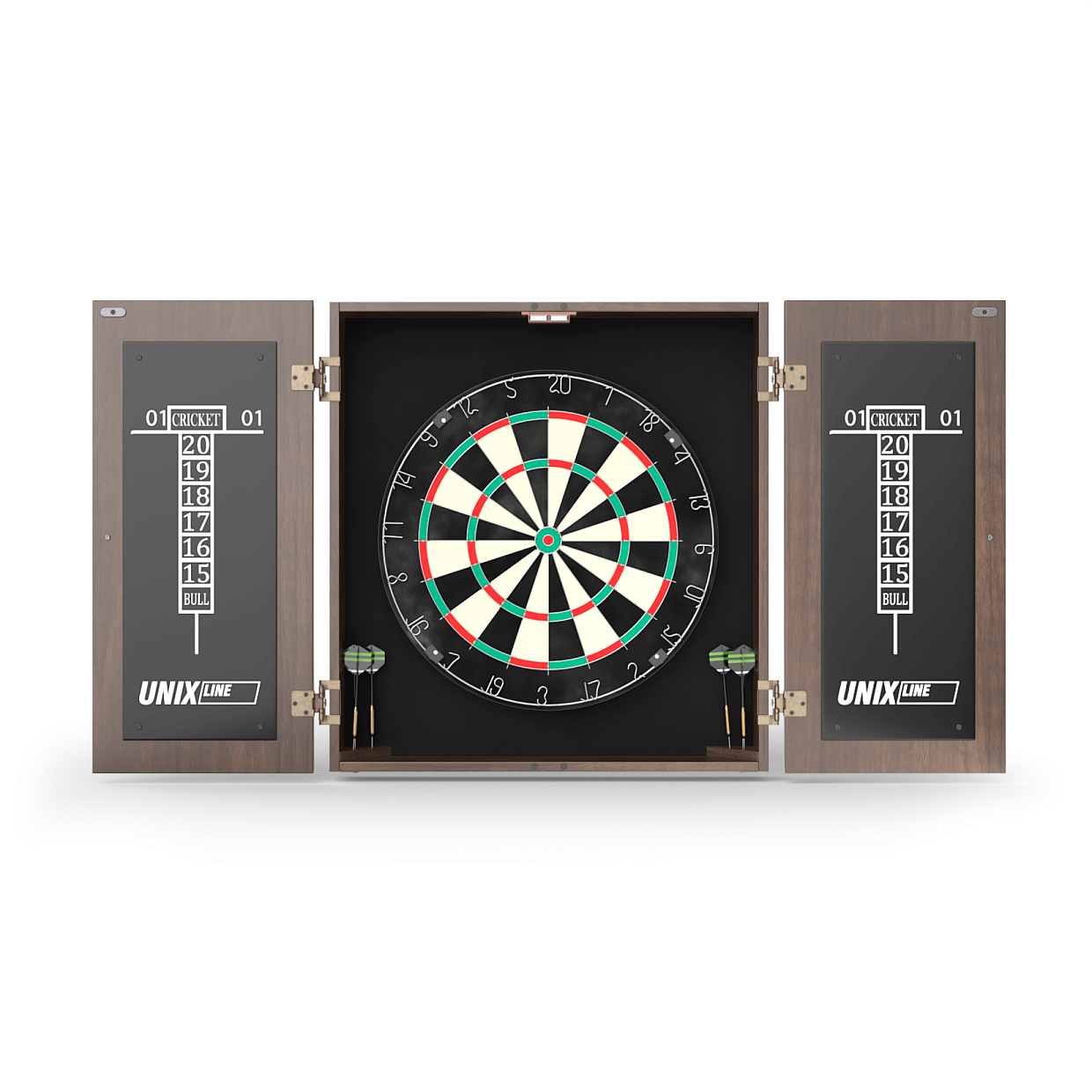 Кабинет для дартса выполнен из качественного дерева и отличается стильным дизайном, который прекрасно впишется в любой интерьер. Он не только защищает мишень от повреждений, но и служит элегантным элементом декора вашего дома или игрового клуба. Открывая двери кабинета, вы погружаетесь в атмосферу настоящего дартс-клуба — все необходимое для игры всегда под рукой!