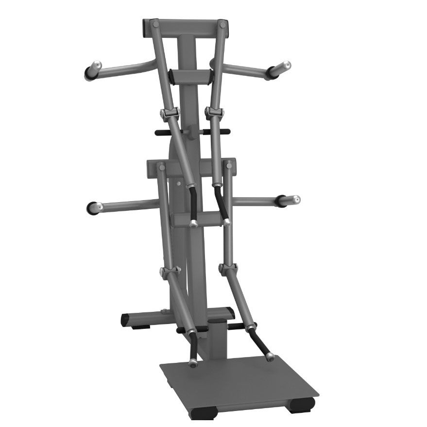 Дельта машина стоя — это силовой тренажёр, предназначенный для изолированной проработки дельтовидных мышц, как средних пучков, так и задних. Он позволяет выполнять упражнения, имитирующие боковые подъёмы рук с гантелями, но с более точной траекторией движения, соответствующей биомеханике. Это снижает нагрузку на суставы и повышает эффективность тренировки. Он относится к серии Basic и рассчитан на коммерческое использование.