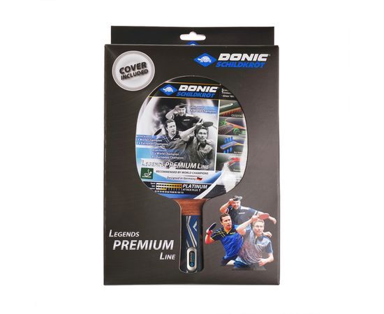 Ракетка "LEGENDS PLTINUM" из премиальной линейки DONIC рассчитана на тип игры Атака+. В комплекте с LEGENDS PLTINUM идёт чехол по форме ракетки. Для покрытия используется накладка Liga, а толщина губки 2,3 мм. Форма ручки Concave - ручка, расширяющаяся к концу. Ракетка одобрена Международной федерацией настольного тенниса ITTF.