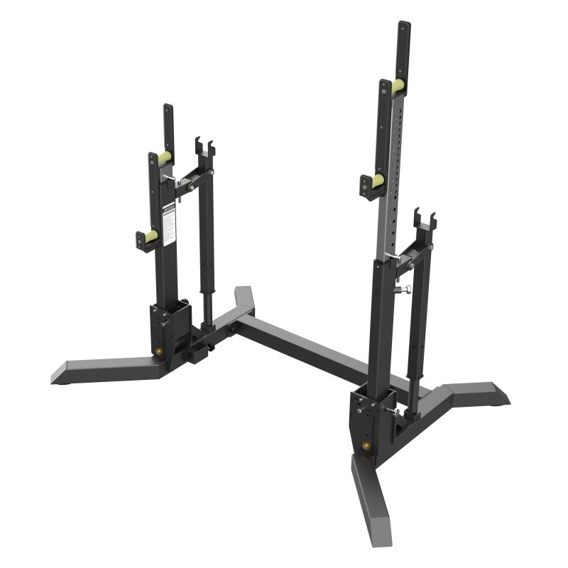 Профессиональный тренажёр для коммерческого использования A3147 предназначен для выполнения упражнений со штангой стоя. Конструкция соответствует требованиям Международной федерации пауэрлифтинга (IPF) и рассчитана на работу с максимальными весами. Домкратный рычажный механизм позволяет быстро изменять высоту положения штанги без её снятия, что обеспечивает удобство и безопасность при проведении силовых тренировок. Стойка имеет конструктивную совместимость с дополнительным модулем – скамьей A3148, который устанавливается при помощи надёжных крепёжных соединений и позволяет выполнять жим лёжа.
